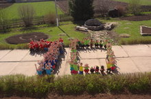 Бүген "Бөек Җиңүнең 70 еллыгы мәктәбем тарихында" акциясе уздырылды. Барлык укучылар да флэш-мобта катнашып мәктәп территориясендә 70 символы ясадылар.