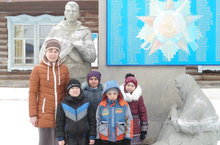Бөек Җиңүнең 70 еллыгын каршылаган көннәрдә башлангыч сыйныф укучылары авыл уртасындагы һәйкәлгә экскурсиягә бардылар
