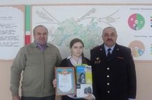 Бүген мәктәптә ГИБДД начальнигы Шафигуллин Ф.Т. белән очрашу үтте. Ул Бөтенрәсәй күләмендә үткәрелгән "Радуга безопасности" конкурсында икенче урын алган 11 нче сыйныф укучысы Гарипова Фәнзиләне котлады. Фәнзиләгә диплом, профессиональ фотоаппарат һәм наушниклар тапшырылды.