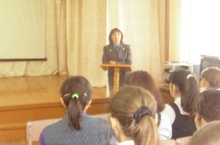 26.11.2011 көнне "Хокук айлыгы" планы нигезендә балигъ булмаган балалар белән эшләүче инспектор Шакирова Л.М. һәм участок полиция хезмәткәре Хаҗиев Р.Р. белән очрашу булды. Алар укучыларның бурычларын, район эчке эшләр бүлеге буенча статистик мәгълүматлар, кич йөрү мәсьәләләре, патруль нәтиҗәләре турында чыгыш ясады.