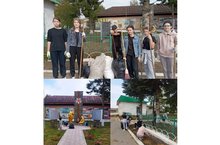 Сегодня учащиеся 7-х классов приняли активное участие в работах по очистке и благоустройству прилегающей к памятнику территории.