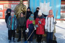 Ученики 6а го класса сохраняют чистоту территории памятника, установленному героям Великой Отечественной войны. Они регулярно очищают дорожки около памятника от снега