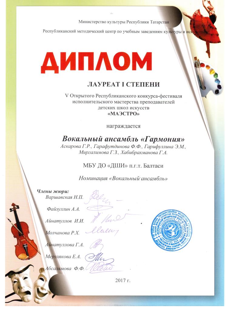 V Открытый республиканский конкурс-фестиваль исполнительского мастерства преподавателей детских школ искусств «МАЭСТРО»