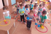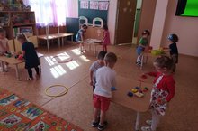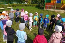 Младшая группа играет в игры на свежем воздухе