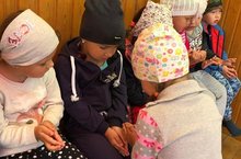 Дети из средней группы играют в татарскую народную игру "Тәңкә салыш".