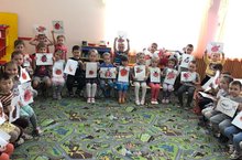Дети младшей группы изучают правила безопасного поведения на дороге/Кечкенәләр төркеме юлда дөрес йөрү кагыйдәләрен үзләштерә.