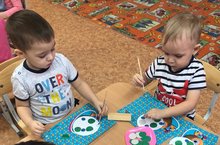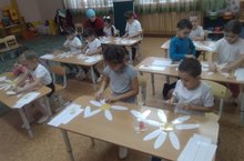 Кечкенәләр төркеме кисеп ябыштыру шөгылендә