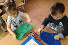 Воспитанники ясельной группы помогают строить дом для зайчика