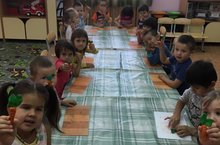 Средняя группа лепит из пластилина "чудо-морковку".
