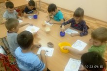 Подготовительная к школе группа учится делать цветок георгина.