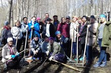 Наш дружный коллектив во время субботника.