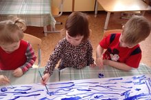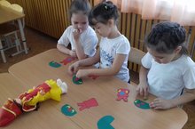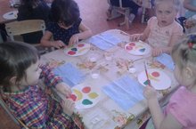 Кечкенәләр төркеме кисеп-ябыштыру эшчәнлегендә.