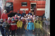 В целях знакомства детей, подготовительной группы, с профессией пожарников, была проведена экскурсия в пожарную часть.