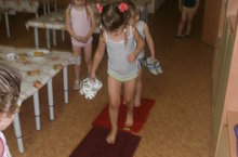 Балаларның сәламәтлекләрен ныгыту, саклау максатыннан кечкенәләр төркеме балалары тозлы сукмактан узалар.