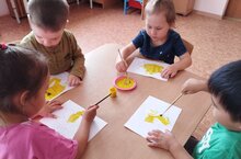 С детьми младшей группы рисовали осенние листья. Воспитатель: Лапшина А.Н.