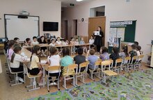Уртанчылар төркеменә янгын сүндерүче бүлегендә хезмәт куючы Лапшин Эдуард Петрович кунакка килде. Ул балаларны янгын сүндерүче hөнәре hәм янгын куркынычсызлыгы кагыйдәләре белән таныштырды.