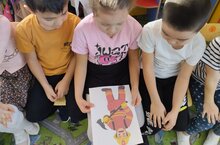 Уртанчылар төркеме белән рус теле шөгылендә. Балалар "Өч аю" әкиятен тыңладылар, эш дәфтәрендә эшләделәр.