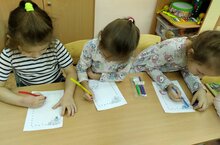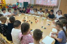 Мәктәпкә әзерлек төркеме балалары белән кисеп-ябыштыру шөгыле.