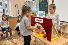 Мәктәпкә әзерлек төркеме балалары "Fruits and vegetables" атамаларын, җиләк-җимеш hәм яшелчәләренең исемнәрен инглизчә өйрәнеп, аларны "Кибет" уены уйнап сөйләмдә кулланырга өйрәнделәр. Инглиз теле тәрбиячесе: Заляева Ә.К.