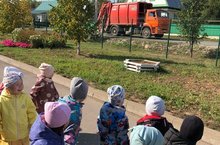 Кечкенәләр төркеме балалары махсус автомобиль эшен күзәтә.