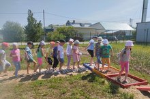 Девиз детей старшей группы "В здоровом теле - здоровый дух" и с удовольствием занимаются на тропе здоровья. Воспитатель: Хисамова А.Р.