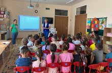 "Куркынычсызлык әлифбасы" проекты кысаларында бакчабызда "Юл хәрәкәте куркынычсызлыгы" оешмасы Балтач бүлеге җитәкчесе Лилия Хадиева белән очрашу - әңгәмә булды. Зурлар, уртанчылар hәм кечкенәләр төркеме балалары үзләренең юл куркынычсызлыгы кагыйдәләре турында белемнәрен ныгыттылар, төрле кызыклы уеннар уйнадылар. Тәрбиячеләр: Латипова Л.Н., Хисамова А.Р.