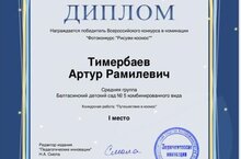 Тимербаев Артур Бөтенроссия олимпиадасында, туклану продуктлары номинациясендә 1 урынны яулап диплом белән бүләкләнде.