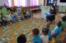 Нәниләр төркеме балалары белән Әнәс Кариның "Чебиләр" шигырен уку мизгеле.