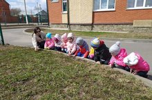Кечкенәләр төркеме яшел чирәмне күзәтәләр.