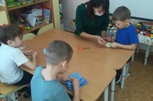 Мәктәпкә әзерлек төркеме балалары режим вакытында төймә тагарга өйрәнделәр.