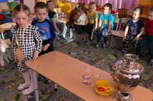 Воспитанники средней группы продолжили знакомство с татарскими народными играми. Сегодня, во время игры" Самовар", закрепили свои знания о" татарской народной кухне".