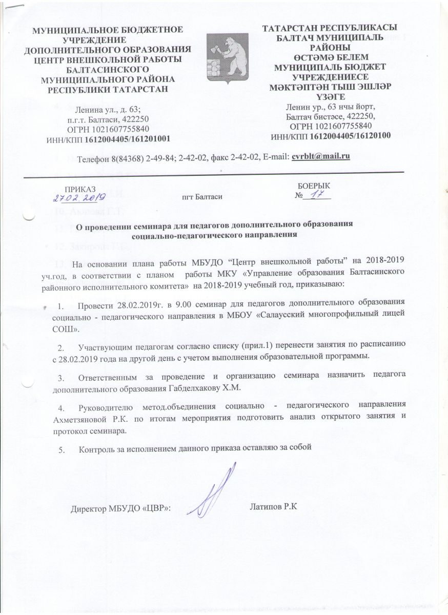 | Короткое название: | МБУДО "ЦВР" Балтасинского муниципального района Республики Татарстан |