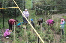 Учащиеся начальных классов охотно работают на приусадебном участке, помогают собирать урожай.