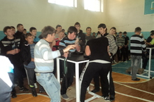 Бүген мәктәптә кул көрәше буенча ярышлар уздырыла. Мәктәбебезгә районның төрле мәктәпләреннән укучылар килде. Шулай итеп, белем йортыбыз бүген шаулап, гөрләп тора.