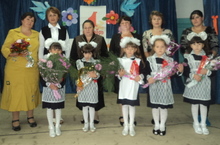 | У нас учат: | 12 учителей, 2 воспитателя /12 укытучы, 2 тәрбияче |