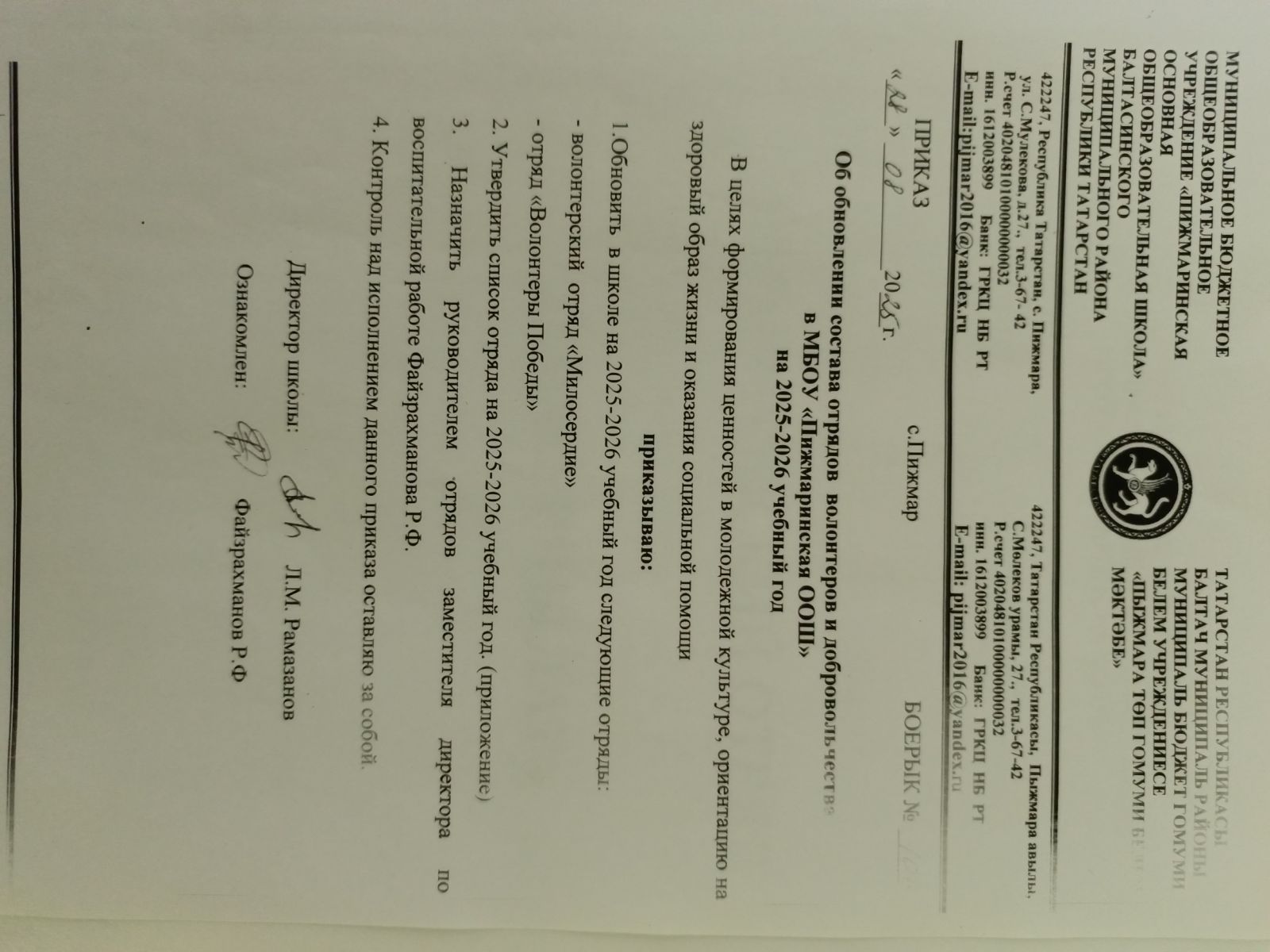 муниципальное бюджетное общеобразовательное учреждение «Пижмаринская основная общеобразовательная школа» Балтасинского муниципального района Республики Татарстан /Татарстан Республикасы Балтач муниципаль районы муниципаль бюджет гомуми белем учреждениесе « Пыжмара төп гомуми белем мәктәбе».
