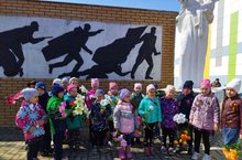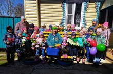 Бүген зурлар-мәктәпкә әзерлек төркемендә тәрбияләнүчеләр Тыл һәм хезмәт ветераны Кузнецова Нурания апа янына барып якынлашып килүче Бөек Җиңүнең 77 еллыгы белән котлап кайттылар.