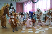 Иң кечкенәләрнең икенче торкемендә тәрбияләнүчеләр "Кыш бабайда кунакта" исемле бәйрәм иртәсендә катнаштылар.Бәйрәмгә куян,аю,убырлы карчыгы, шурәле, яна елның төп геройлары килеп балаларны сөендерделәр.
