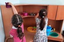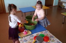 Кечкенәләр төркемендә тәрбияләнүчеләр үзләре уйнаган уенчыкларын үзләре юа.