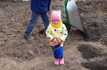 Кечкенәләр төркемендә тәрбияләнүче Зиятдинова Мәрьям әтисе белән бергә язгы эшләрне башкара