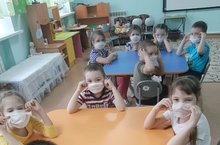 Мәктәпкә әзерлек төркемендә тәрбияләнүчеләр вирустан саклану маскаларын үз куллары белән ясарга өйрәнделәр.