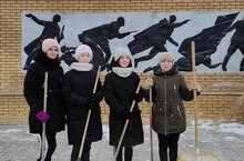 Обучающиеся 10 класса очистили территорию памятника от снега/10нчы сыйныф укучылары һәйкәл территориясен кардан чистартуда катнашты.