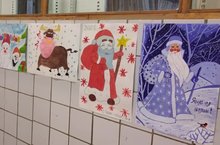 Организована выставка новогодних рисунков среди классов/Яңа елга багышлап сыйныфлар арасында рәсем күргәзмәсе үткәрелде