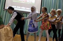 Учащиеся 2 класса показали инсценировку сказки "Репка" на английском языке для учащхся 2-4 классов.