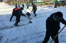 8 нче сыйныф укучылары һәйкәл территориясен чистартуда