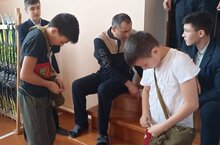 Соревнования с применением противогаза./Противогаз киеп ярышлар.