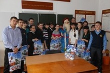 Бүген укучыларга яӊа ел бүләге бирелде. Бүләкләрне укучыларга, үзенеӊ яӊа ел котлауларын ирештереп, кыш бабай тапшырды.