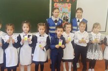 В рамках декады «Внимание, дети! Обучающимся 1 класса ЮИДовцы дарили фликеры./»Игътибар, балалар!» декадасы кысаларында ЮИД командасы 1 нче сыйныф укучыларына яктылык кайтарткыч элементлар бүләк итте.