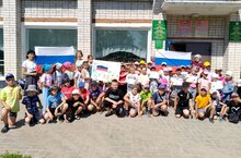 В День России на пришкольном лагере прошла различными играми, флешмобом./Россия көне уңаеннан бәйрәм чаралары һәм флешмоб үткәрелде.