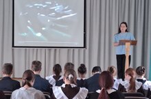 Студент нефтехимического колледжа Нуреева А.Ш. ознакомила учащихся с колледжом и профессиями./Казан нефть химиясе колледжы студенты Нуреева А.Ш. колледж һэм анда укытылучы һөнәрләр турында сөйләде.